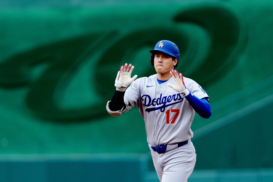 大谷確信這是一支全壘打後,神情自若地繞過壘包,轉播畫面則切到了道奇板凳區。這時,因傷缺陣的穆奇·貝茲、剛升上大聯盟的金河成,以及山本由伸三人並肩而立,齊齊揮手,這一搞笑的畫面被捕捉到。